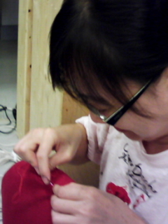 赤い布に向かっておもしろいことつぶやいてるんだぞ。