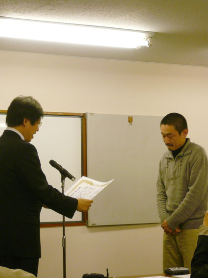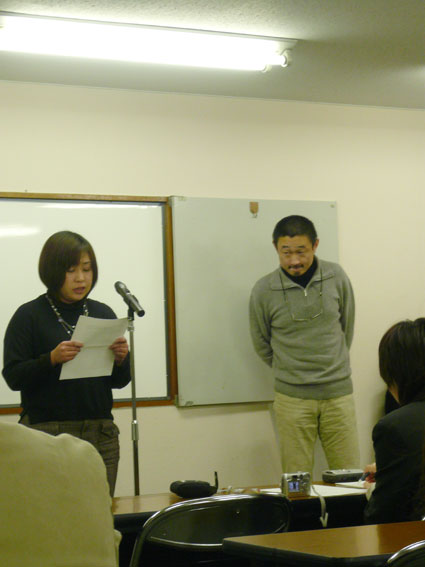 写真は、代読してくれている押谷さん。すてき。