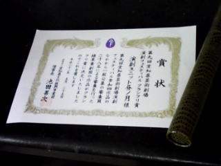 «賞状が届いて。»